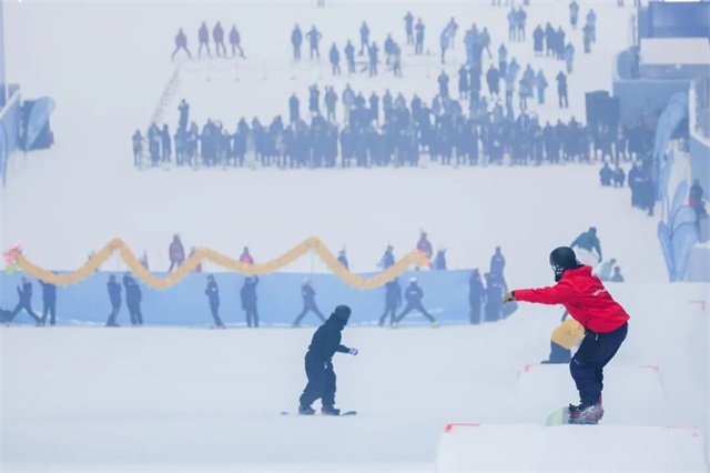 滑雪场总建筑面积10万平方米,配备5条专业滑道,雪道最大垂直落差83米,最大坡度18°,单道最长463米,并设有2处地形公园,打造覆盖初级至专业级的多元化雪道体系。同时,雪场内还设有4000平方米的冰雪乐园,目前正在进行最后调试,待开放后将为家庭客群及冰雪初学者提供更丰富的娱乐选择。