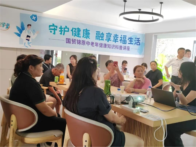 成都国贸锦原开展中老年人健康知识科普,提供科学养生指导。