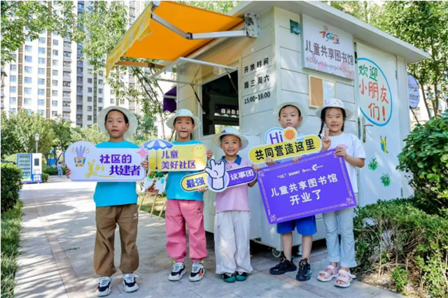 济南财富壹号花园将废弃岗亭改造为儿童共享空间,支持儿童成长。